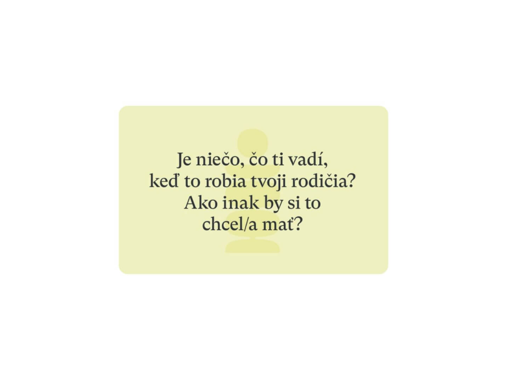 - Otázky len pre rodičov (bez účasti či prítomnosti detí).