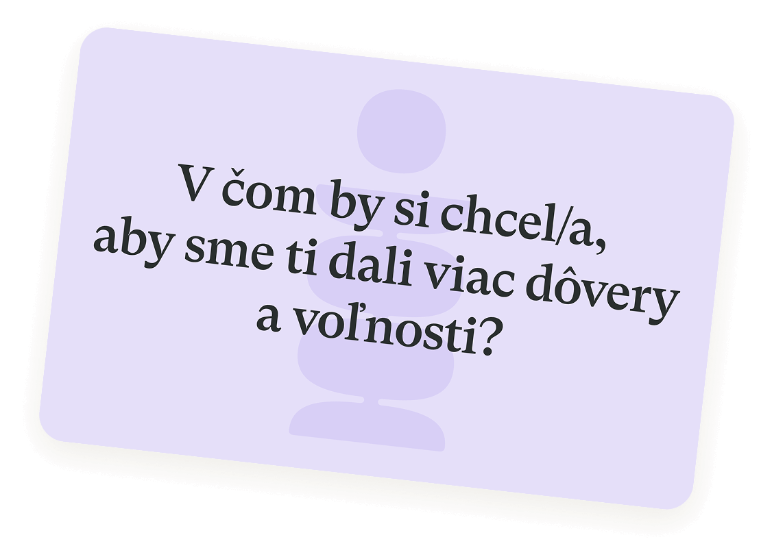 Otázky z kategórie Rodičia umožnia vášmu tínedžerovi spoznať aj vás v inej polohe než len tej rodičovskej, ale ako človeka s príbehom. Tiež sa dozviete veci, ktoré bežne nezaznejú.