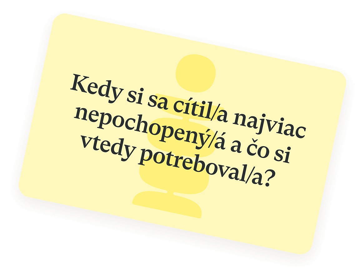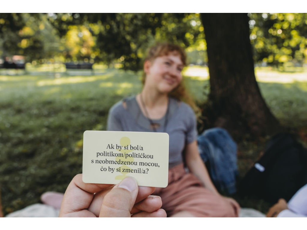 Keď sa pýta kartička, odpadajú skryté pasce a ostávajú len ľudské príbehy, videnie sveta, prežívania, ktoré žijú vedľa seba, hoci sa líšia. Hovoriť je zrazu bezpečné.